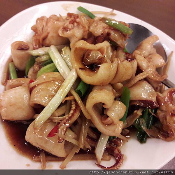 蔥爆中卷,很入味,其中的白蔥段也非常好吃‧