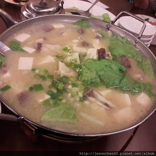 味噌鮮魚湯,除魚外,還有洋蔥及青菜,所以湯是