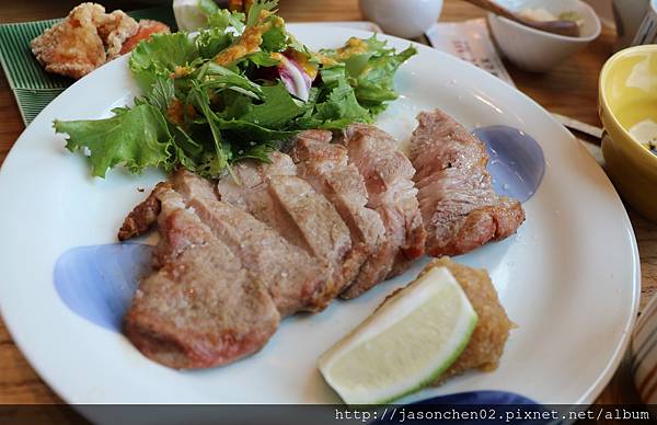 炭烤大麥豬排釜飯套餐-主菜豬排,建議九分熟較嫩