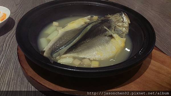 百秒黃花魚,其實就是清蒸黃魚,肉質細嫩,很好吃‧