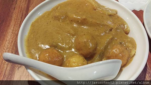 咖哩三寶(魚蛋,豬皮和白蘿蔔),有點膩‧