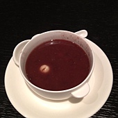朋友點的紫米紅豆粥(左)與紅豆湯圓(右)