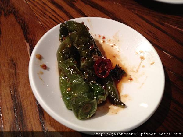 由於人不多,我們只點了小魚苦瓜、滷大腸、燻魚、青椒